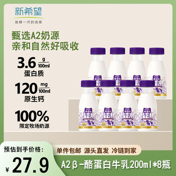 新希望 A2β-酪蛋白牛乳 200mL*8瓶26.38元包邮