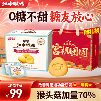 江中猴姑 0糖低GI猴头菇酥性饼干礼盒 960g 63.55元包邮