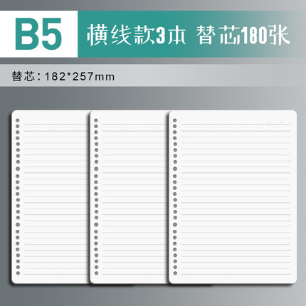 【晨光旗舰店】B5替芯活页本3本,双面书写,顺滑不易渗墨,圆角边设计,书写随心,翻页流畅。创意清新,课堂笔记本,护眼,加厚纸张【运费险】