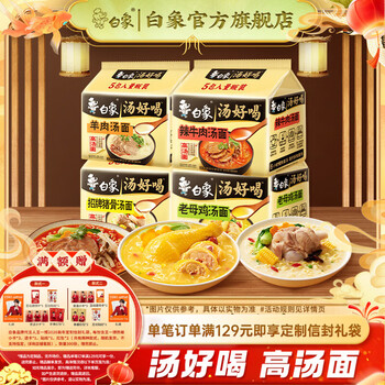 白象 汤好喝方便面 老母鸡汤+猪骨+辣牛+羊肉组合 20袋共2115g 35.9元
