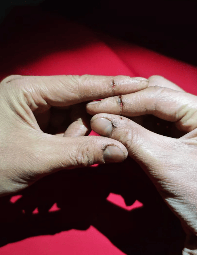 一次鳌太线救援后,毛队队友的手