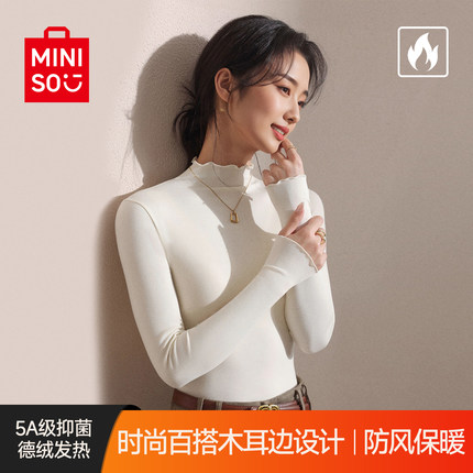 德绒发热,锁温保暖,5A级抑菌,木耳边半高领设计,时尚百搭 ,修身显瘦,保暖更有型。目前天猫商城名创优品内搭旗舰店售价¥45.45,下单立减叠加¥10优惠券,实付新低¥29.9包邮,5色可选码全。
