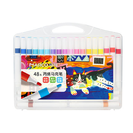这款马可丙烯马克笔专为学生美术创作设计,48色丰富配色满足绘画多样需求。采用优质丙烯墨水,色彩饱和度高,不透纸背,支持多层叠色,适合素描、插画、手账等多种场景。笔头顺滑流畅,易于控制,适合小学生、初中生及美术初学者使用。品牌源自上海,品质稳定,是日常练习与课堂创作的实用之选。