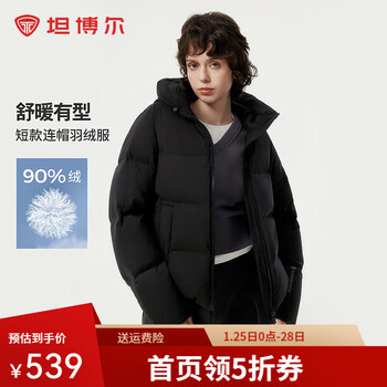 坦博尔 女士680蓬短款连帽羽绒服TBF330332D 新低350.5元包邮