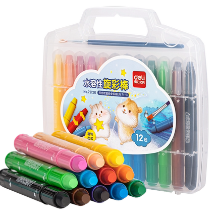 “得力经典油画棒,安全无毒可水洗!笔尖画线条,笔尾大面积涂色,让孩子享受绘画乐趣~激发培养创造力!满足孩子的绘画需求!抗菌无毒不脏手