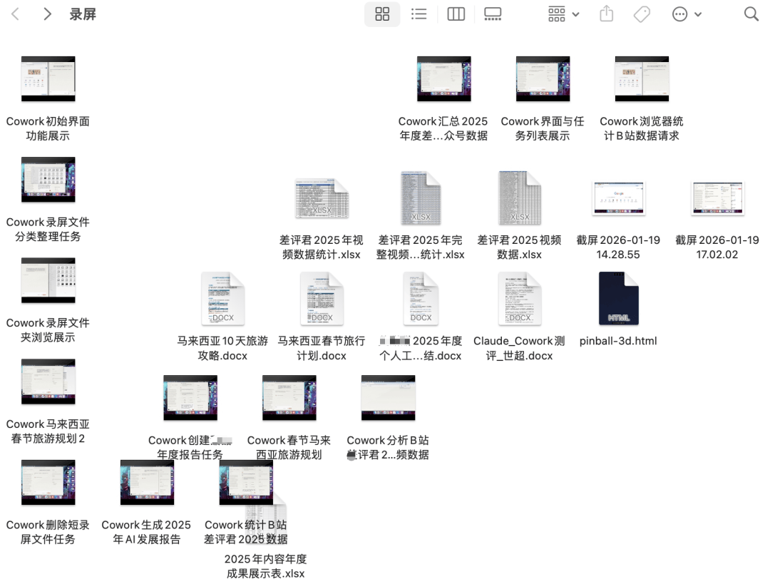 然后 Clawdbot 就开始干活了。它先扫描了一遍文件夹,创建了几个分类,比如录屏、文档资料、截屏图片和其他。接着开始一个个移动文件。
