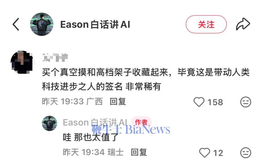 还有网友认为这件皮衣具有高度的收藏价值,应该买个真空膜和高档架子收藏起来,毕竟这是带动人类科技进步之人的签名,非常稀有。