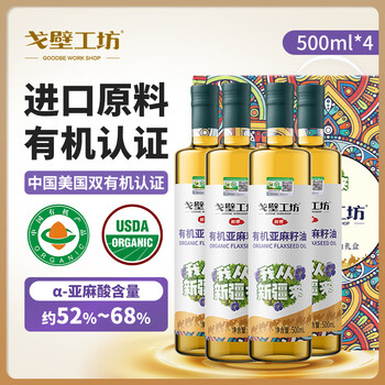 戈壁工坊 有机亚麻籽油500mL*4瓶礼盒 2件新低152元包邮(76元/件)