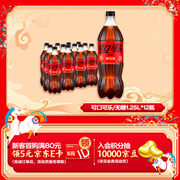 可口可乐 零度可乐 无糖零卡碳酸饮料 1.25Lx12瓶 新老包装随机发货 40.1元