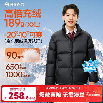 网易严选 2025年新款 男女同款90绒超蓬羽绒服轻暖面包服 188.9元包邮