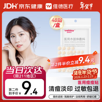 痘痘贴真滴有用!医用水胶体材质,日间更隐形,夜晚倍吸收,物理祛痘不刺激,独立小包装,更卫生,目前维德(WELLDAY)京东自营旗舰店48贴/盒售价¥18.8,店铺新客下单立减2元,满2件打7.50折,下单2件,实付¥26.2包邮,低至¥13.1/盒。