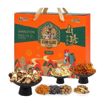 源于自然,产地严选,采摘烘干,煮菜炖汤,滋补养生。这款礼盒内含干制黑木耳100g、干制鹿茸菇110g、干制蛹虫草110g、干制鲍鱼菇110g、干制杏鲍菇110g、桂圆干240g。目前天猫超市售价¥109,下单立减¥46,领取¥20优惠券,新低50元包邮