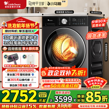 需要洗烘一体可看这款,AI智能投放,纯平全嵌,国际羊毛绿标认证。目前小天鹅洗衣机京东自营旗舰店动售价3599元,领取满1件85折优惠券,详情页选择以旧换新可补贴50元(旧品选个护健康-普通牙刷-其他),结账领取国补,付款2545.54元,赠品折现100元,下单返现150元,实付2299.2元包邮低价!