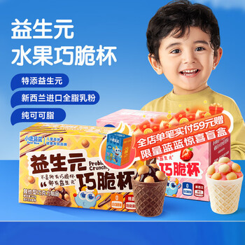 三只松鼠 小鹿蓝蓝 益生元巧脆杯 草莓味+巧克力味组合*2盒/28杯 新低27.51元包邮