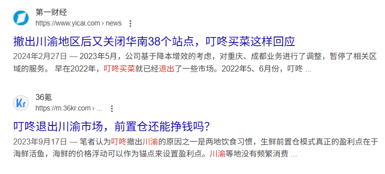 为了保利润,叮咚断臂撤退,放弃全国化的目标。陆陆续续撤出了川渝、广深等部分不盈利或竞争激烈的市场,彻底死守“ 长三角 ”大本营。