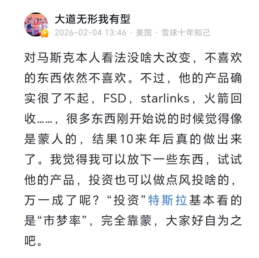 在这个系统里,有对人性的洞察(茅台的社交货币属性),有对科技的客观评价(特斯拉的产品力),更有对常识的坚守(不熟不做、长期主义)。