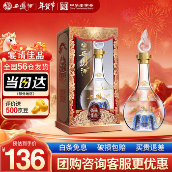 一般低价都要90左右!中华老字号,纯粮酿造!目前京东旗舰店售价136元,领取满270减108元券,叠加¥200-20黑五券,评价送5元京豆,下单2件,实付139元包邮,折合69.5元/瓶白菜价!