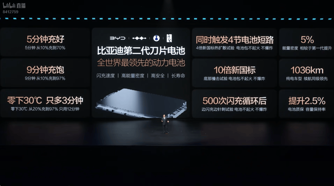 到了今年,他们带着第二代刀片电池以及闪充技术来了。