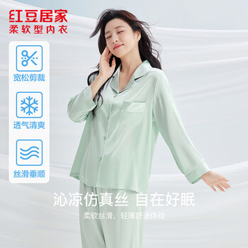 红豆居家 女士睡衣仿真丝长袖长裤家居服套装 JDJ166 69.8元