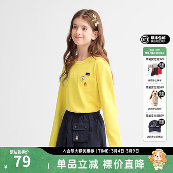 白菜!Hush Puppies 暇步士 男女童云轻棉圆领衫长袖T恤(105~160码) 新低40.13元包邮
