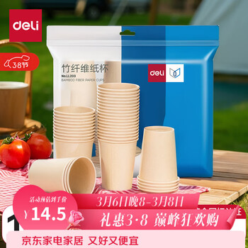 白菜!deli 得力 加厚食品级竹纤维原浆一次性纸杯 228ml*100只新低4.95元包邮(0.04元/个)
