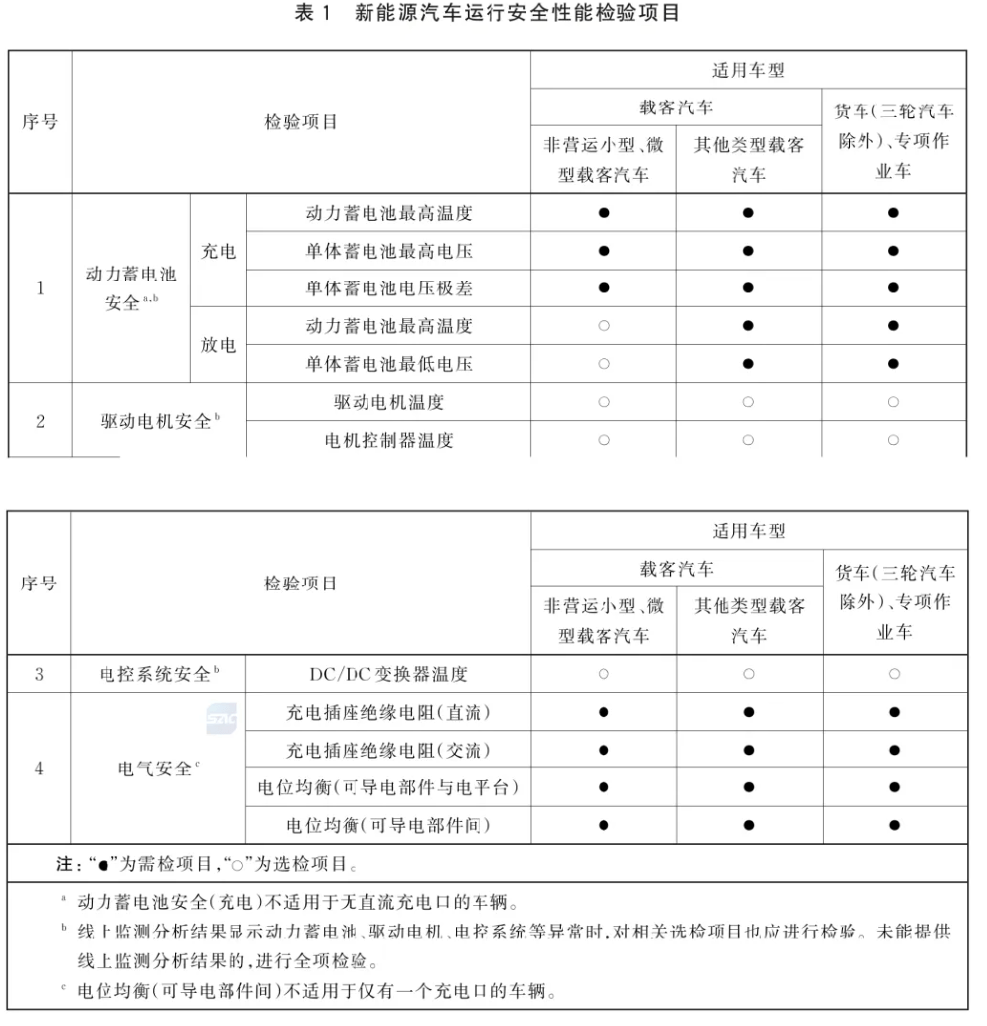 国标里列的检测项目,有动力电池电压、温度,电机温度、DC/DC 温度,充电插座绝缘电阻等,都是围绕三电系统来的。