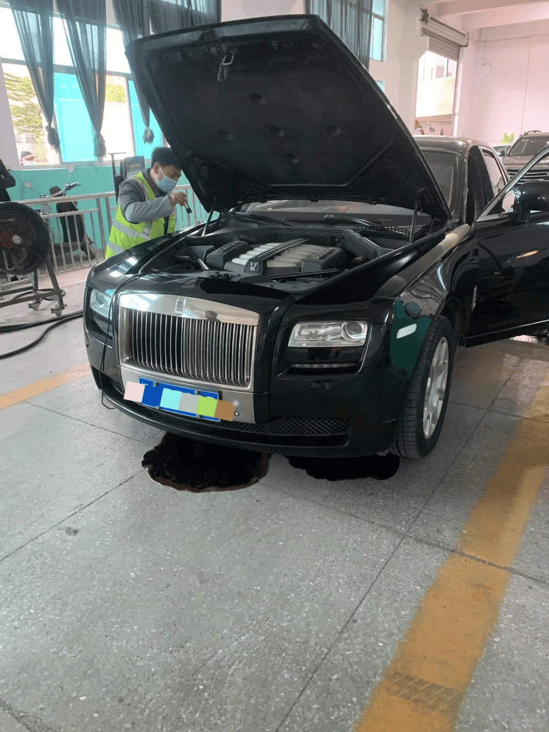 前些年,一辆劳斯莱斯古斯特,在检测站做排放检测的时候,不知道啥情况,直接爆缸,机油漏了一地。