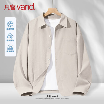 凡客诚品 长袖衬衫男 白色 浅米 L 夏季薄款宽松大码 62.95元包邮