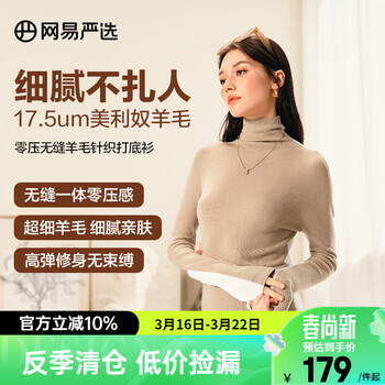 白菜!网易严选 女士100%美利奴羊毛无缝一体针织打底衫 多色新低89元包邮