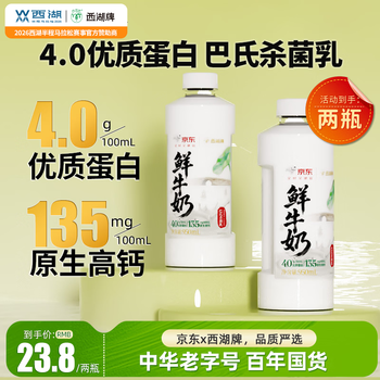 西湖牌 4.0g蛋白鲜牛奶 950ml*2 低温巴氏杀菌高钙鲜奶 21.8元(需首购)