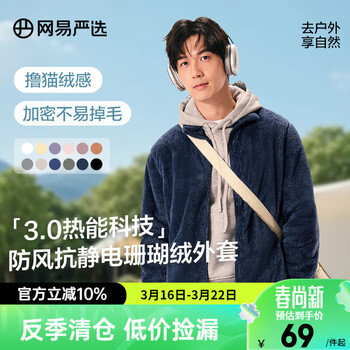 白菜!网易严选 情侣款抗静电珊瑚绒双面长绒保暖外套4120685 多色 新低49元包邮
