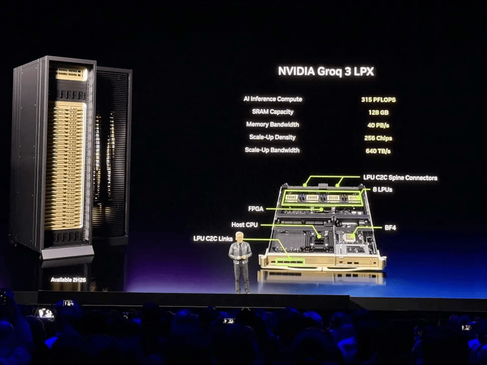这次老黄也没藏着,直接宣布已经把 LPU 集成到了 Vera Rubin 平台,推出了 NVIDIA Groq 3 LPX 作为推理加速器。