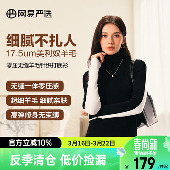 白菜!网易严选 女士100%美利奴羊毛无缝一体针织打底衫 多色新低89元包邮