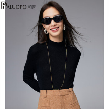 白菜!PALUOPO 帕罗 100%绵羊毛 女士半高领纯色打底羊毛衫ET23288Y 多色 新低199元包邮