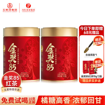 川红 金奖85特级工夫红茶 125g*2罐(赠同款15g*2盒+茶匙)51.1元包邮