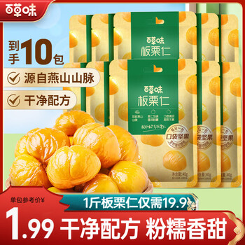 来自北纬38°的燕山山脉,这里的板栗格外粉糯~目前50g*10袋京东商城百草味官方旗舰店售价¥21.8,叠加¥15-5优惠券,首购礼金1元,实付¥15.8包邮,近期低价!