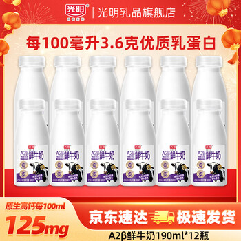 每100mL含3.6g乳蛋白和125mg原生钙,A2β-酪蛋白,亲和易吸收。目前京东商城光明乳品旗舰店售价¥49.9,领取15优惠券,实付¥34.9包邮,折¥2.9/瓶。