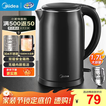 Midea 美的 MK-SH17M301 304不锈钢电热水壶 1.7L 64元包邮