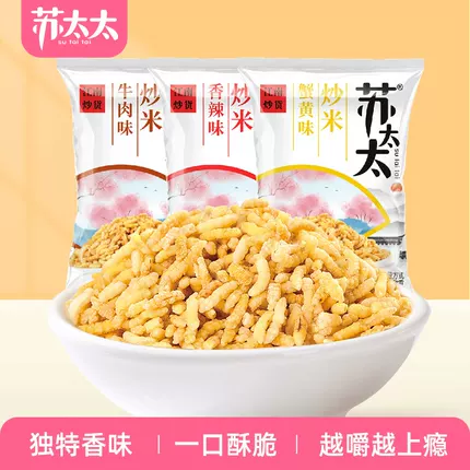 30年国民炒货,米香浓郁,酥香嘎嘣脆!超级挡饿!办公室必备小零食。目前天猫商城苏太太食品旗舰店500g袋装售价¥26.8,下单2件立减叠加¥12优惠券,实付¥19.8包邮2斤到手,牛肉味炒米/蒜香味青豌豆/多款可选。