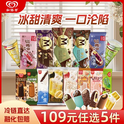 任选5组,和路雪&梦龙&可爱多&千层雪多口味冰淇淋99元包邮