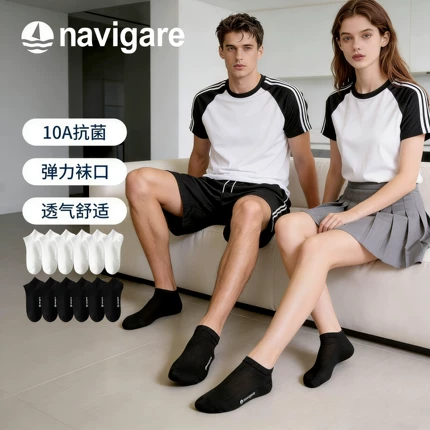春夏穿袜优选Navigare意大利小帆船!10A抗菌防臭,透气不闷脚,弹力袜口不勒腿,全新升级面料柔软抗起球,黑白两色百搭所有穿搭,商务通勤、运动休闲都能穿。