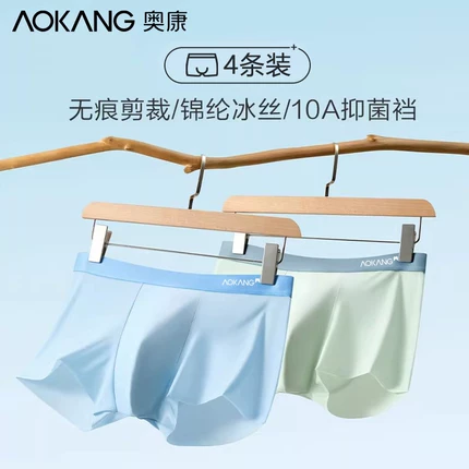 奥康 夏款男士冰丝10A抑菌无痕内裤 4条装 29.9元包邮