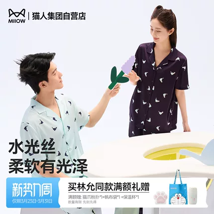 MiiOW 猫人 男女款水光丝超柔睡衣套装56.92元包邮起