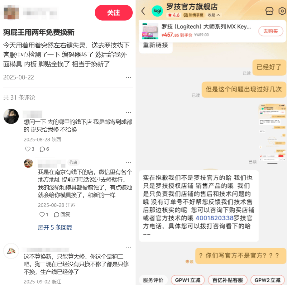 一部分人认为罗技售后无敌,经常直接换新,有人鼠标用了 2 年,维修了 5 次,最后一次维修时产品下架了,罗技打九折左右把钱退给了他们,秒到账。