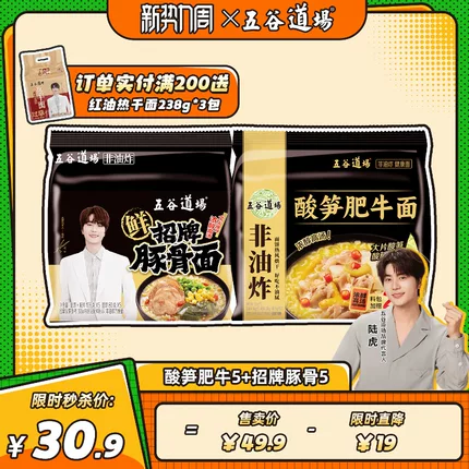 五谷道场 酸笋肥牛/招牌豚骨/招牌辣牛肉面 10包装29.9元包邮(2.99元/包)