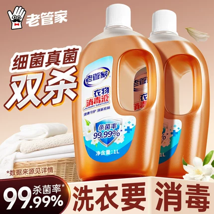 消字号认证, 细菌真菌双杀,除菌率99.999%。目前天猫商城老管家旗舰店1L*2瓶售价¥37.4,下单立减叠加¥10元优惠券 ,APP端商品详情页右上角点“…”-淘金币-足迹加抵-加购物车,淘金币可抵扣1.17元,叠加自动领取的店铺2元限时优惠券,实付¥16.73包邮,折合¥9.4/瓶入手好价。