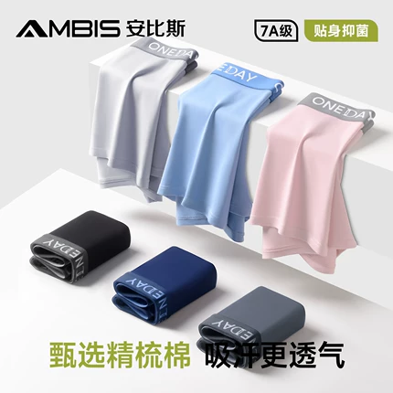 Ambis 安比斯 男士纯棉7A抗菌中腰透气四角内裤3条装29.9元包邮