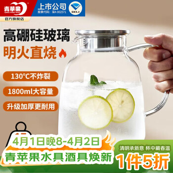 青苹果 冷水壶 耐热玻璃 1.8L 烟灰色 电陶炉适用 14.95元