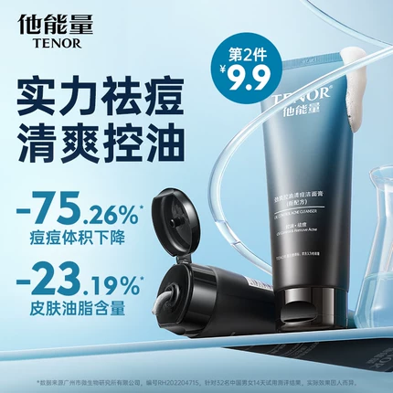 他能量洗面奶,男士专用控油祛痘深层清洁洁面膏,黑头护肤品洁面乳!