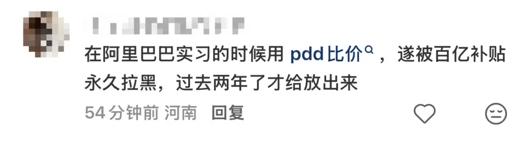还有阿里的前实习生表示,在阿里实习期间使用拼多多时,被限用百亿补贴,两年后才解除限制。